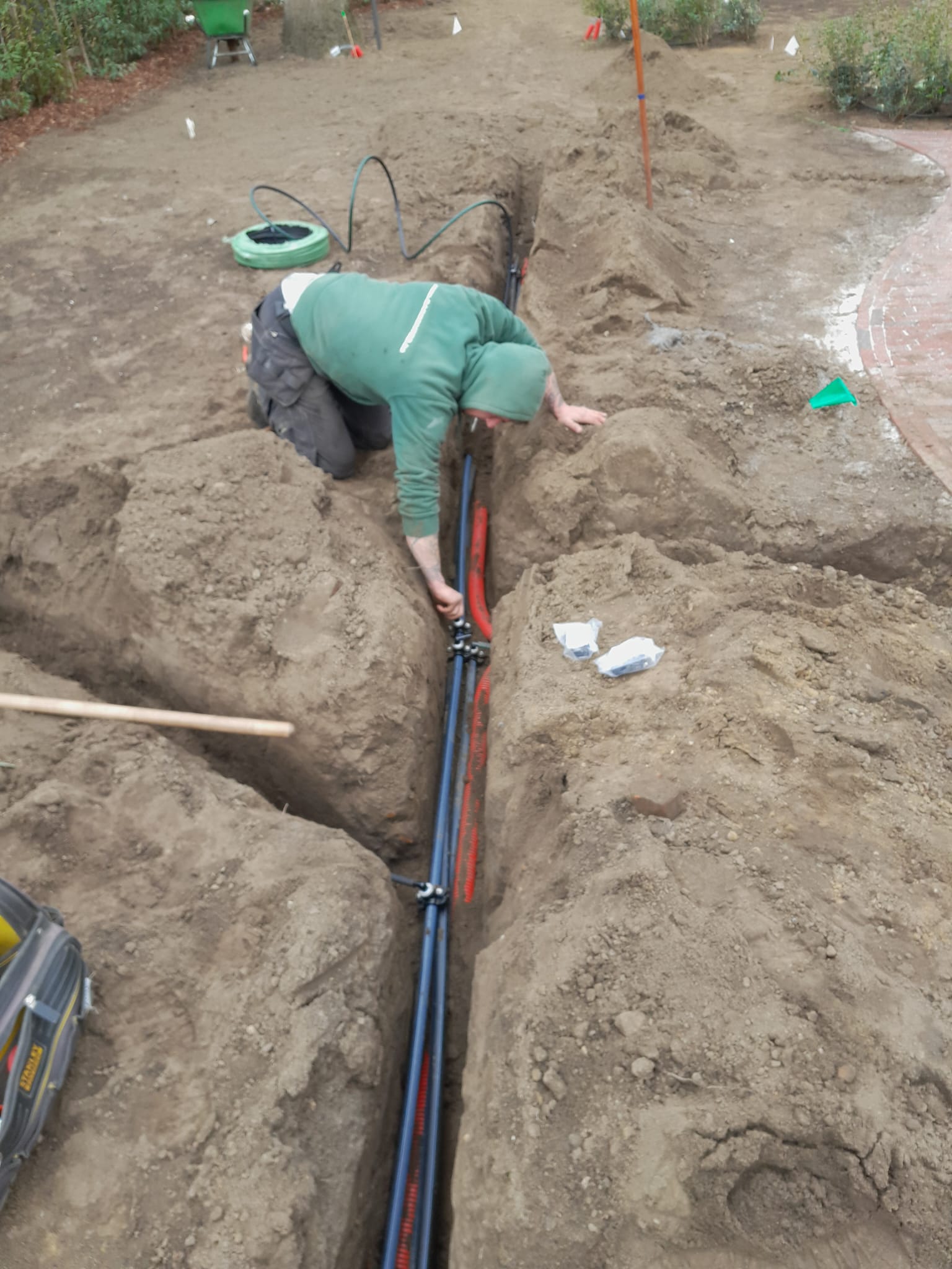 Bij aankoop van de materialen voorzien wij gratis een beregeningsontwerp en/of verlichtingsvoorstel.